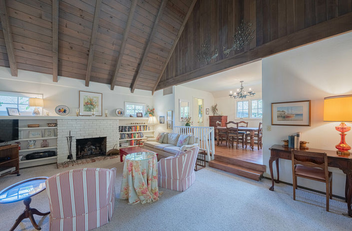 Welcome to this adorable two-bedroom, two-bath Tudor-style cottage, perfectly nestled in the sought-after Carmel Point neighborhood. Situated on an oversized lot encompassing 5,200 sqft and just a short stroll to both Carmel Beach and Carmel River Beach, this cozy yet spacious home combines classic Carmel charm with modern comforts. The bright and airy living room features vaulted ceilings, crisp white walls, and a brick gas-log fireplace flanked by built-in bookshelves. Just up two steps is the dining area and a thoughtfully organized kitchen equipped with an electric range, microwave, dishwasher, and a corner sink. Upstairs, a cozy loft area offers a secondary living space and access to a small private deck, perfect for quiet moments or enjoying the sea breeze. Both bedrooms offer en-suite baths and open to a large deck, which is ideal for morning coffee or evening relaxation. Additional conveniences include a washer/dryer off the kitchen, a single carport plus driveway space, and abundant street parking. Whether you are looking for a weekend getaway, a longer coastal stay, or a successful vacation rental property, this Carmel Point gem offers rentability, comfort, charm, and an unbeatable Carmel Point location.